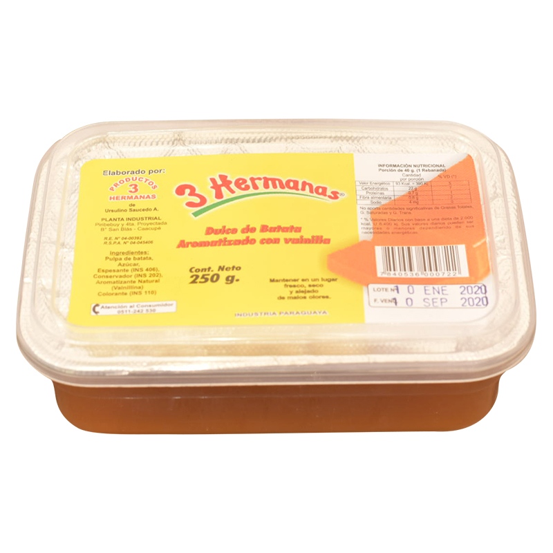 3 HERMANAS DULCE DE BATATA ENV.PLAST.250GR