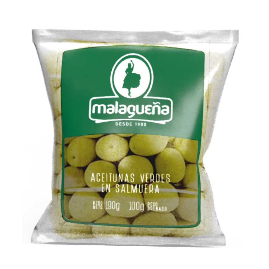 ACEITUNAS VERDES MALAGUEÑA C/CAROZO SACHET 190GR