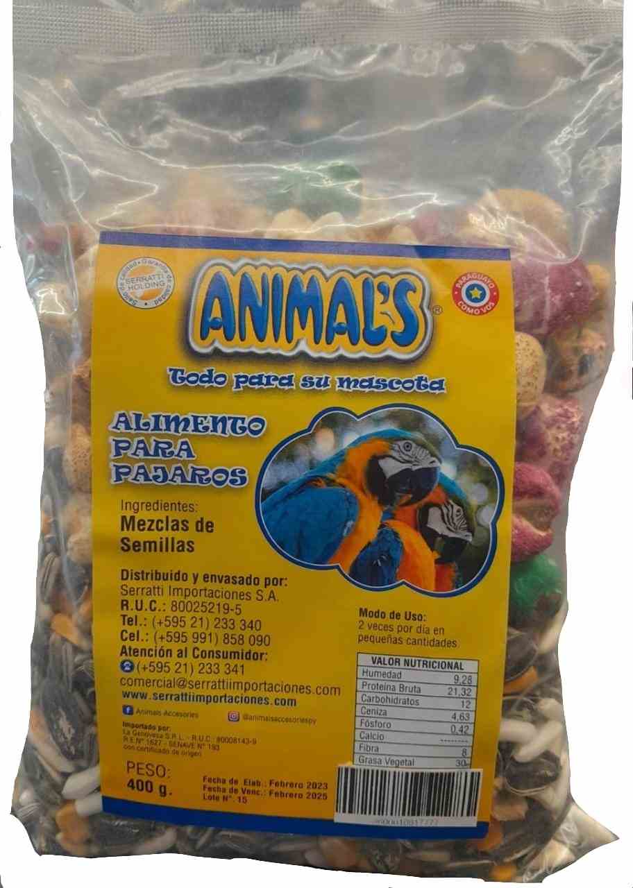 Inicio Catálogo de productos MASCOTAS ALIMENTOS PARA MASCOTAS ALIM.P/AVES ANIMALS LOROS/PERICOS X400 GRS