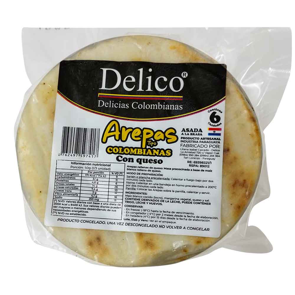 AREPAS DELICO TIPO COLOMBIANAS C/ QUESO 6UN