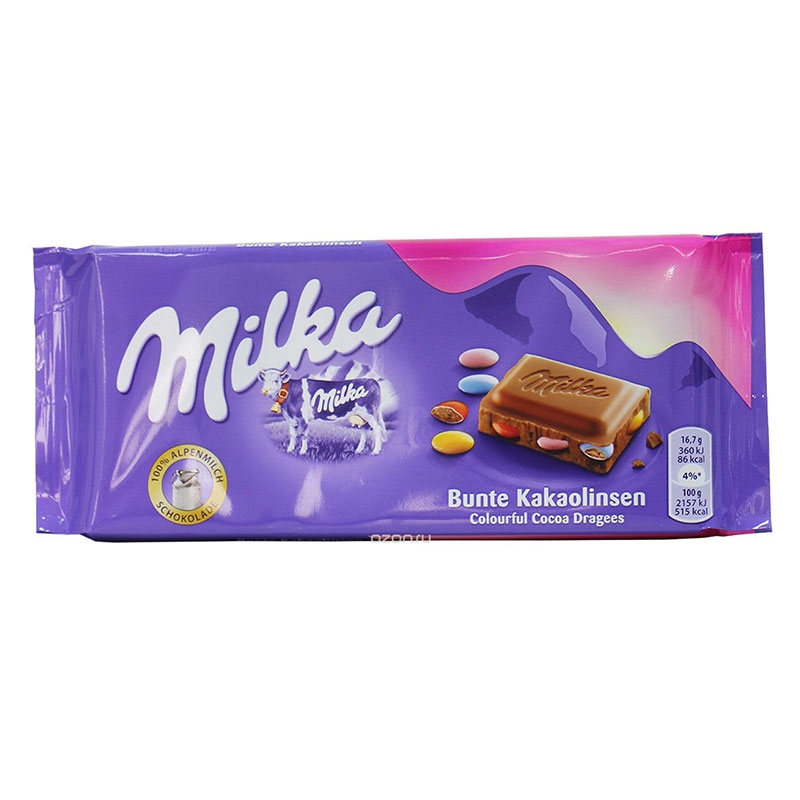 CHOCOLATE MILKA TAB/BUNTE KAKAOLINSEN 100GR