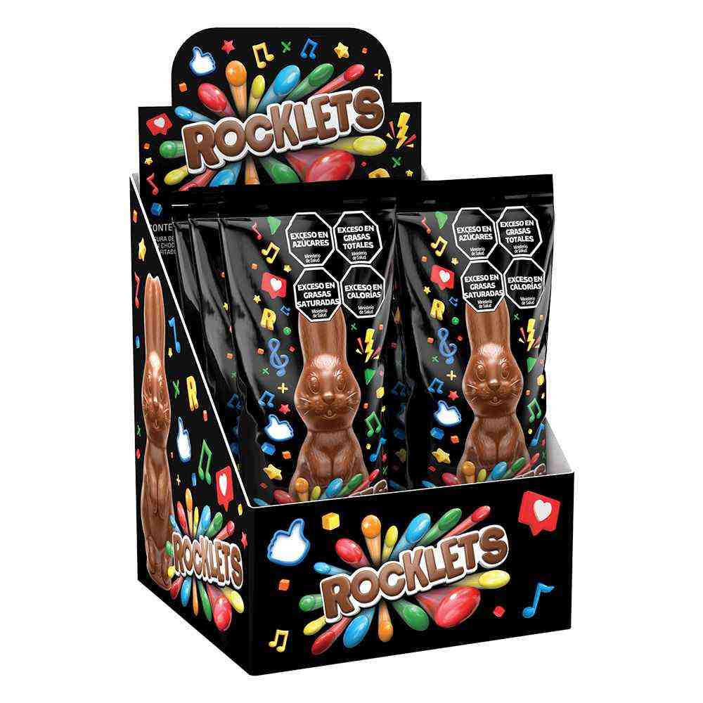 Inicio Catálogo de productos CHOCOLATE Y GOLOSINAS OTROS CHOCOLATES CONEJO DE PASCUA ROCKLET 110 GR