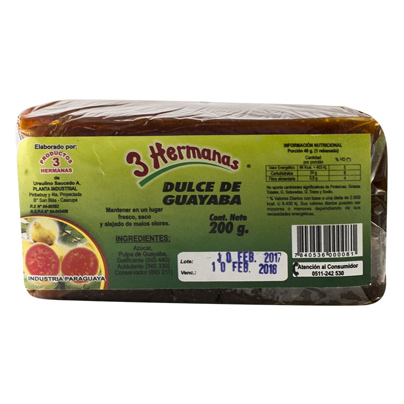 DULCE DE GUAYABA 3 HERMANAS EN BARRA 200GR