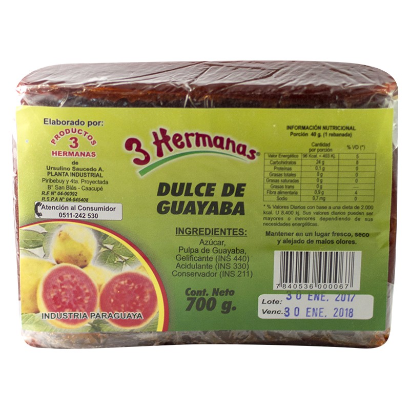 DULCE DE GUAYABA 3 HERMANAS EN BARRA 700GR
