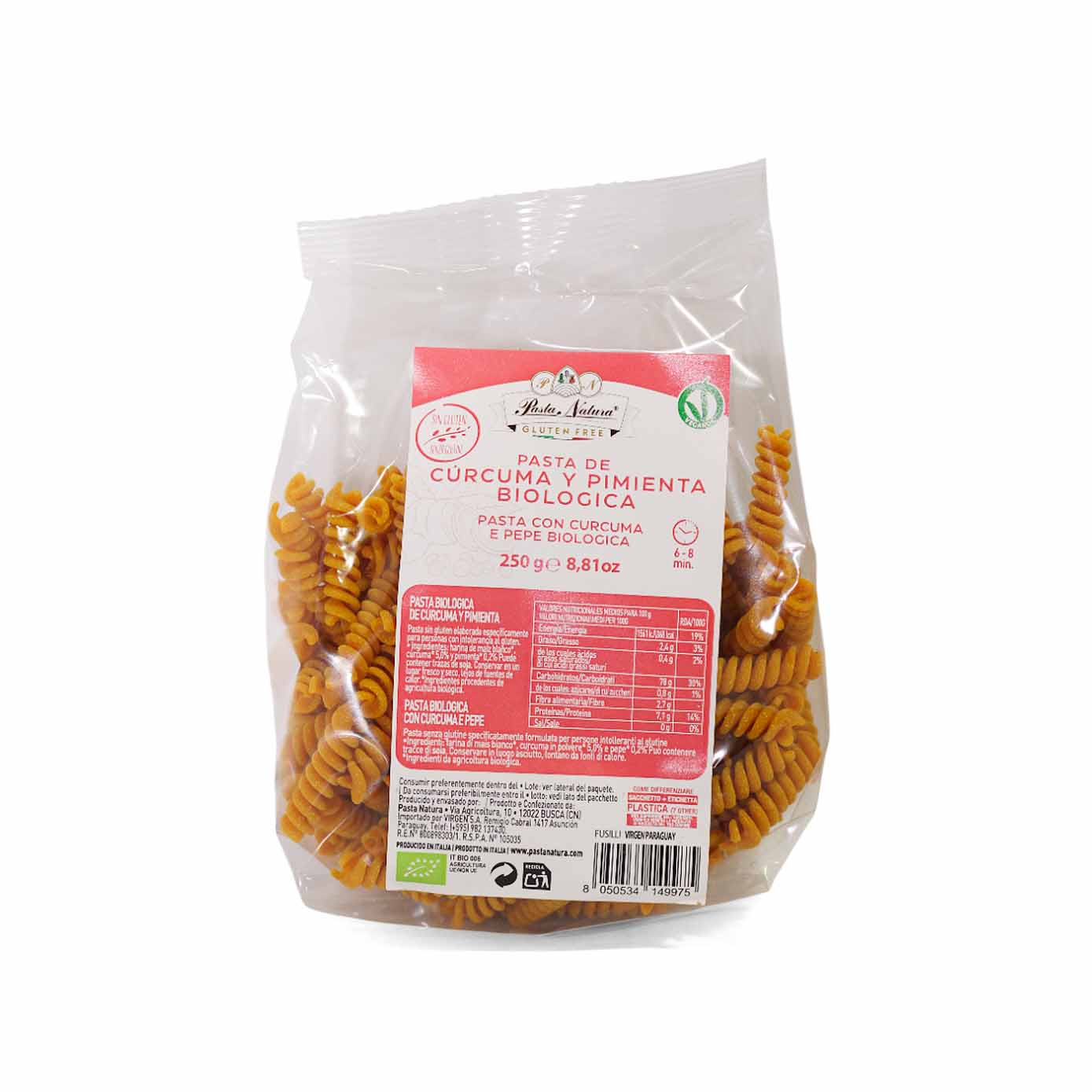 FIDEO PASTA NATURA CURCUMA PIMINETA BIOLOGICA 250G