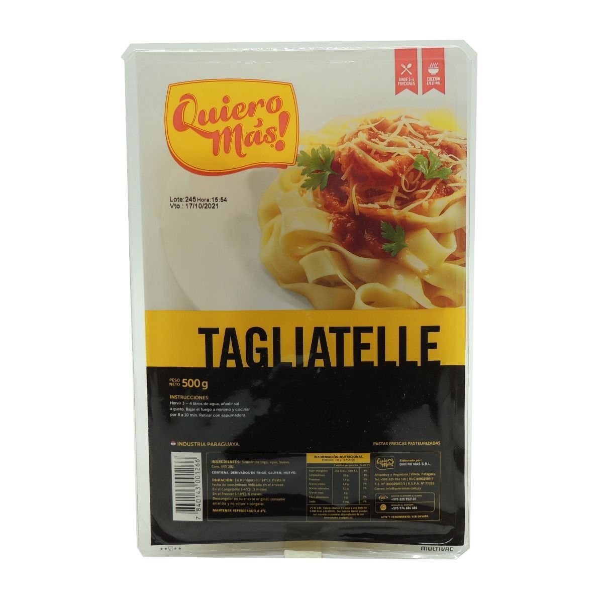 Inicio Catálogo de productos PASTAS FRESCAS SIN RELLENO FIDEO TAGLIATELLE QUIERO MAS PASTEURIZADO 500GR