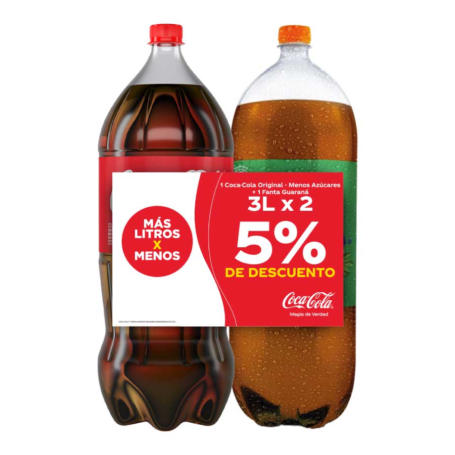 PACK X 2 DE COCA COLA + FANTA GUARANA RA DE 3L