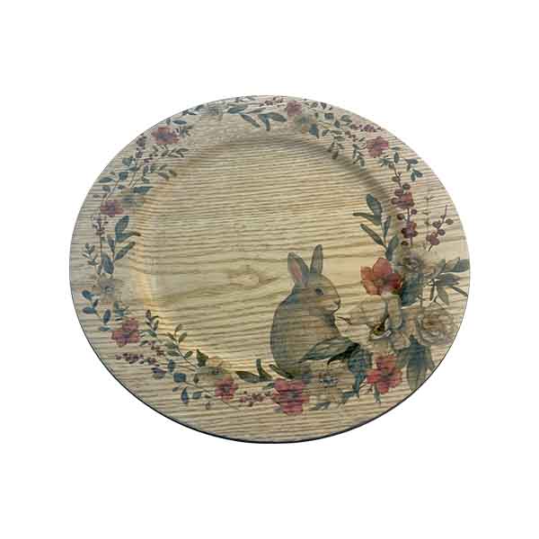 PLATO PLAYO SIMIL MADERA CONEJO PASCUA 33X33 PLAST