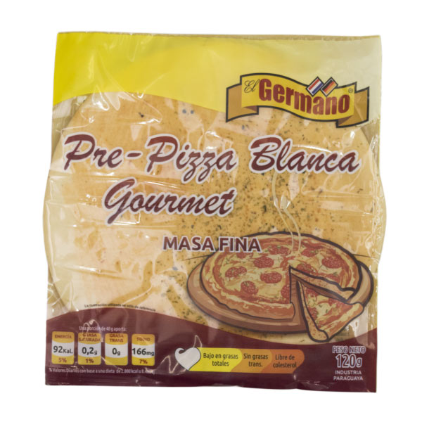Inicio Catálogo de productos PANADERIA TERCEROS PREPIZZA EL GERMANO GOURMET BLANCA MASA FINA 120G