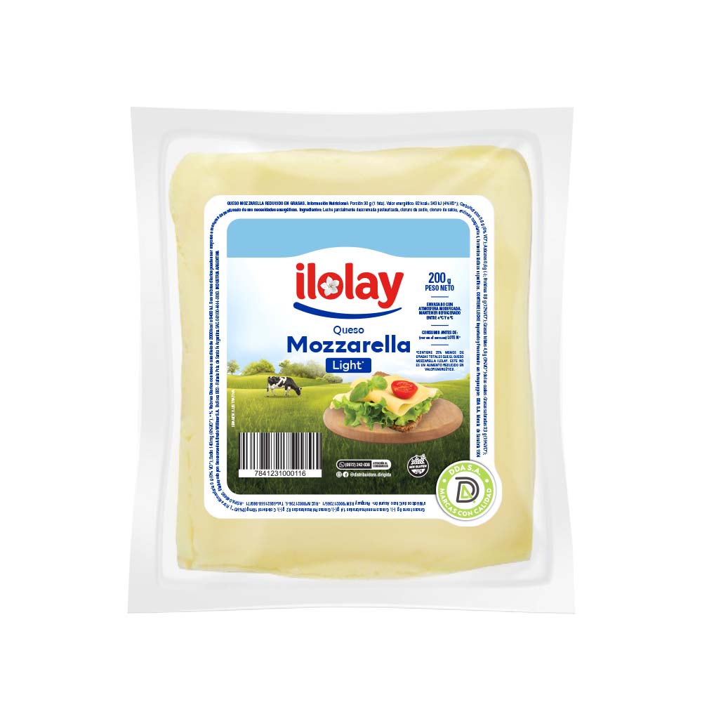 QUESO MOZZARELLA ILOLAY LIGHT 200 GRS