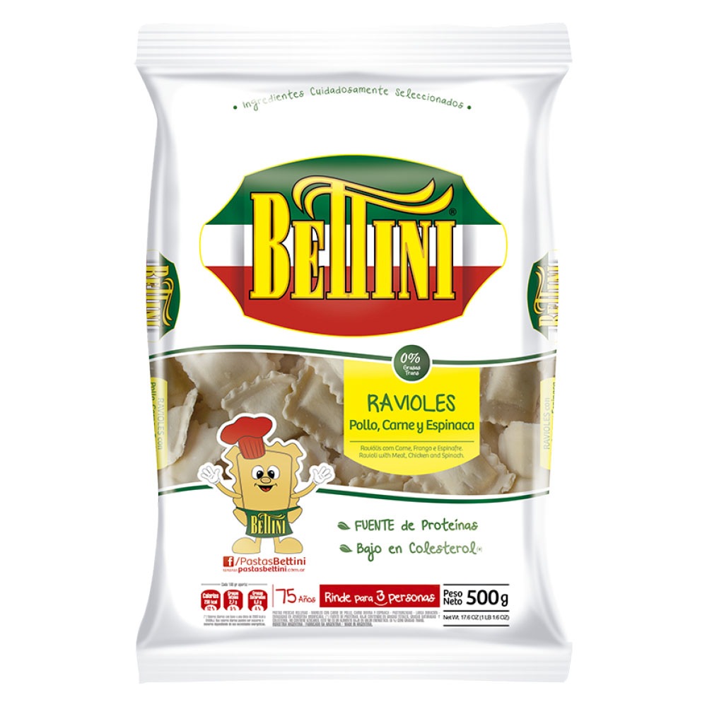 BETTINI PASTA EN BOLSA RAVIOLES POLLO CARNE ESP.*8