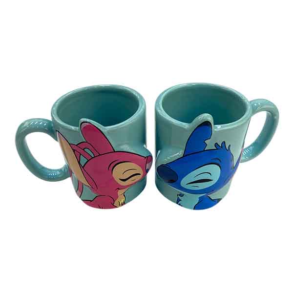 SET TAZA STITCH ROSA/AZUL 3D 2PCS 11CM PORCELANA R