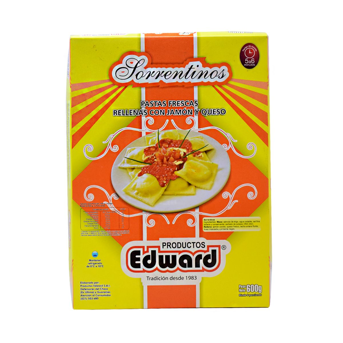Inicio Catálogo de productos PASTAS FRESCAS CON RELLENO SORRENTINOS EDWARD JAMON Y QUESO