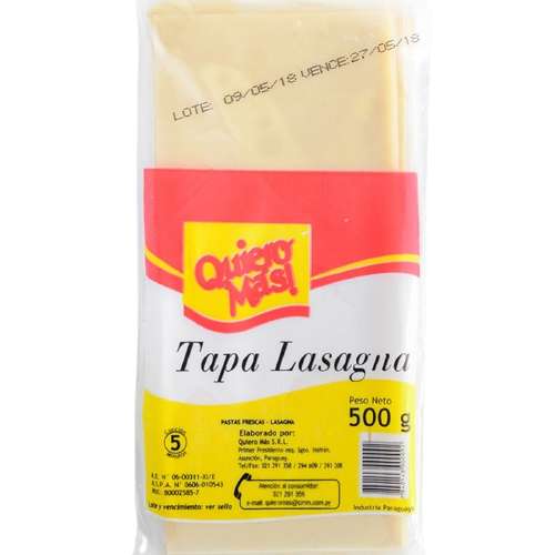 TAPA P/LASAGNA QUIERO MAS 500 GR