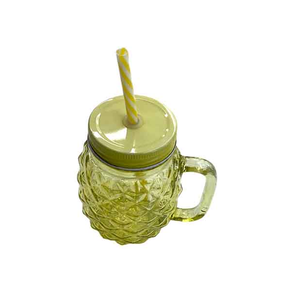 VASO MASON C/PAJITA PIÑA 13X7CM VIDRIO REF 66254-1